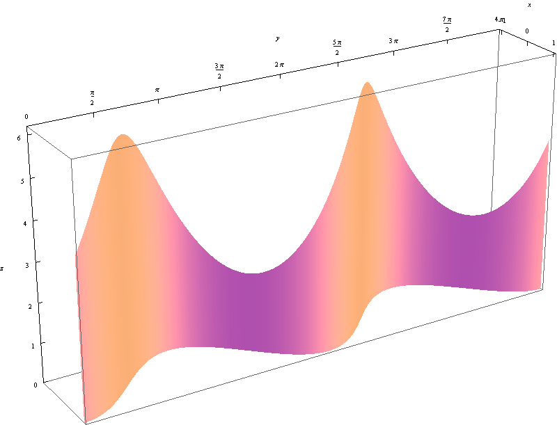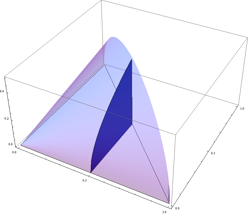 For the homework I asked you to calculate the volume of the house built on this yellow foundation with the roof at the level $z= x e^x$. The lowest level of this roof is $1/2 \sqrt{e} \approx 0.824361$ at the point $(1/2,2).$ The highest level of this roof is $4e^4 \approx 218.393$ at the point $(4,1).$ It is difficult to to plot a graph with such large difference in the highest and the lowest value. Therefore, instead of the function $x e^x,$ I will use $x e^{x/8}$ in the plot below. For this new roof function the lowest and the highest levels are approximately $0.532247$ and $6.59489.$ This is really a beautiful architectural design, so I wanted to share it with you.