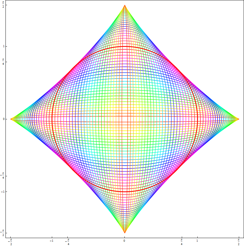 On the plot above I emphasised the part of the curve corresponding to $t \in (0,1)$ in dark blue. That is the part between the black and the red point which is below the diagonal and contains the maroon point. The part between the red and black point which is above the diagonal is in blue. This part contains the light red point. On the curve I indicated the direction of the increasing $t$ by arrows.