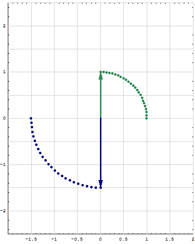 Here are animations of different matrices in action. In each scene the navy blue vector is the image of sea green vector under multiplication by a matrix A. For easier visualization of the action the heads of the vectors leave traces. Just looking at the movies you can guess what the matrix is in each movie. You can also see what its eigenvalues and eigenvectors are, whether they are positive, negative, complex, ...
