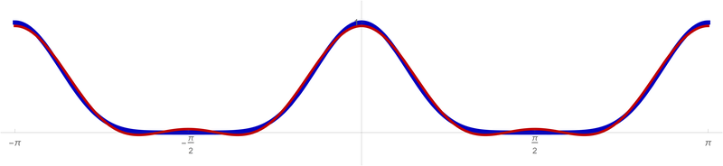 ![]() $(\cos t)^6 \approx \frac{5}{16}+\frac{15}{32} \cos(2t)+\frac{3}{16} \cos(4t)$ |