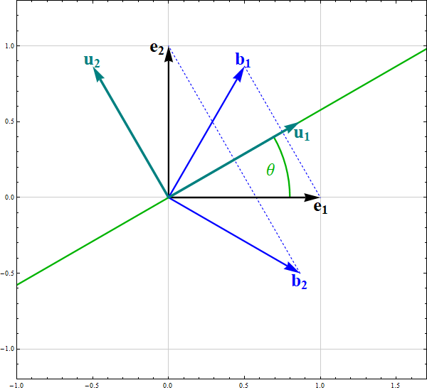 Now assume that $\lambda_1 \neq \lambda_2$. Let $\mathbf{u}_1$ be a unit eigenvector corresponding to $\lambda_1$ and let $\mathbf{u}_2$ be a unit eigenvector corresponding to $\lambda_2$. We proved that eigenvectors corresponding to distinct eigenvalues of a symmetric matrix are orthogonal. Since $A$ is symmetric, $\mathbf{u}_1$ and $\mathbf{u}_2$ are orthogonal, that is the matrix $U = \begin{bmatrix} \mathbf{u}_1 & \mathbf{u}_2 \end{bmatrix}$ is orthogonal. Since $\mathbf{u}_1$ and $\mathbf{u}_2$ are eigenvectors of $A$ we have \[ AU = U \begin{bmatrix} \lambda_1 & 0 \\ 0 & \lambda_2 \end{bmatrix} = UD. \] Therefore $A=UDU^\top.$ This proves that $A$ is orthogonally diagonalizable.