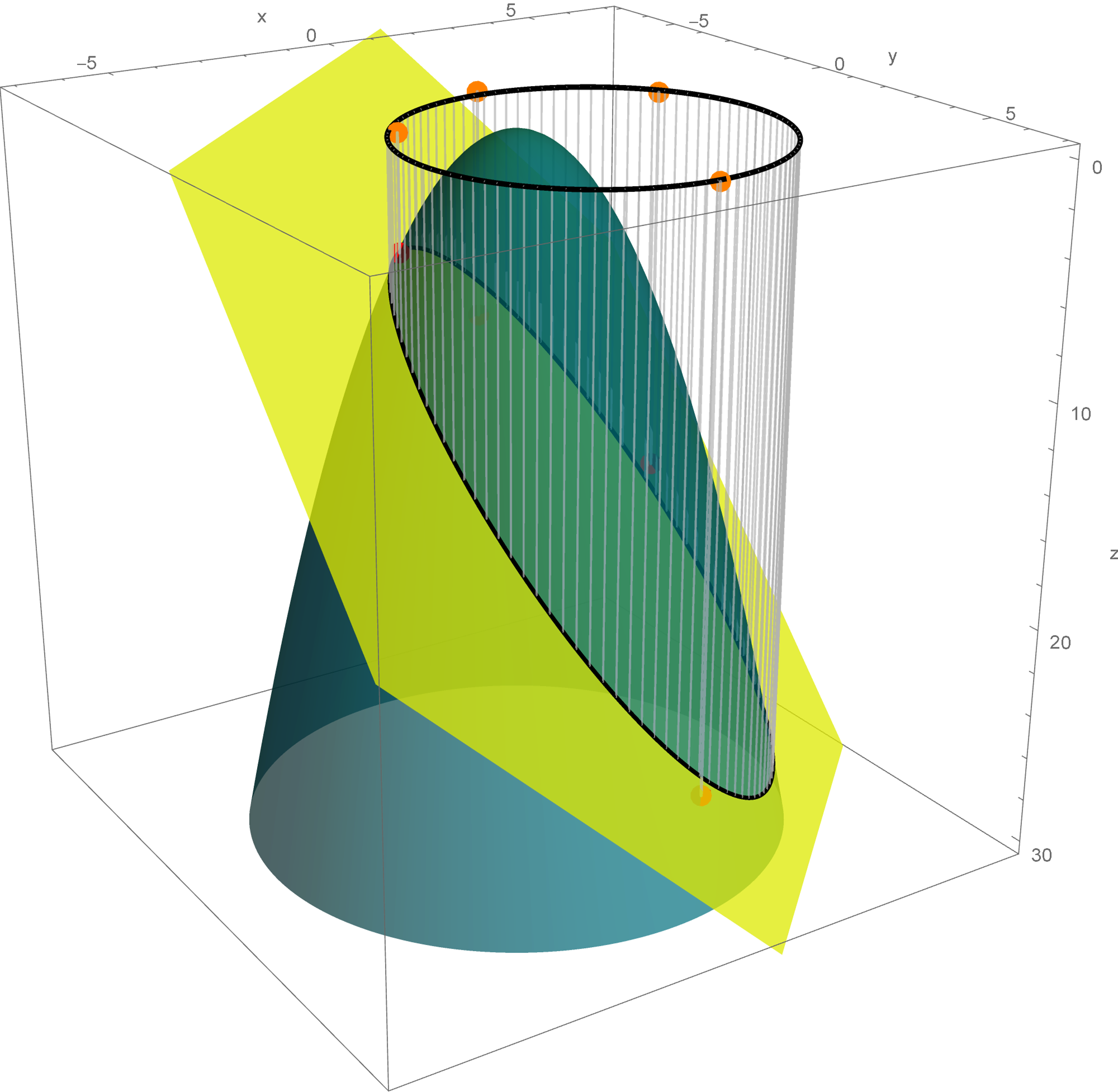 Yesterday we described a method of finding, in a certain way, the best fit circle to a given set of points. The method is identical to finding the least-squares fit plane to a set of given points. In this case all the given points lie on the canonical rotated paraboloid $z = x^2+y^2.$