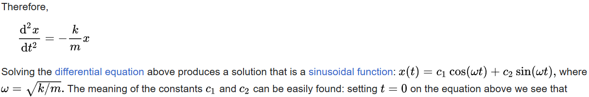 This equation is a second order linear homogeneous equation that you studied in an Ordinary Differential Equations class. In fact this is, so called mass-spring equation, see Wikipedia's page Simple Harmonic Motion and the snippet below.