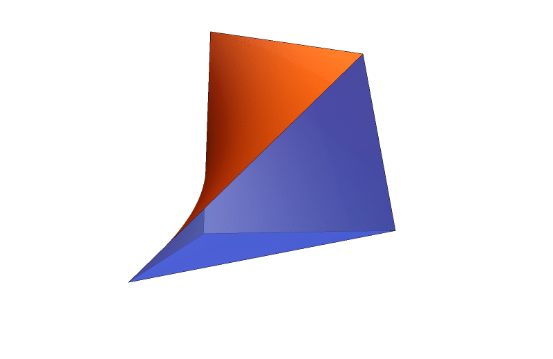 Let us verify one other point on the ellipsoid, for example $\left(2, 1/2, \frac{\sqrt{2}}{2}\right).$ The corresponding volume is \(\displaystyle \frac{\sqrt{2}}{2}.\) Since \[ \frac{\sqrt{2}}{2} \lt 1 \qquad \text{and} \qquad 1 \lt \frac{2\sqrt{3}}{3}, \] this is consistent with our claim that we have found the cuboid with the maximum volume. These two cuboids are illustrated in the picture below.
