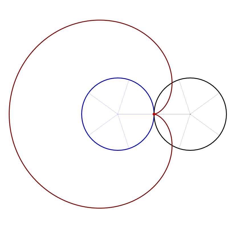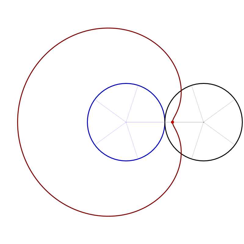 The animation below illustrates how the curve's parametrization is obtained. To help you follow along, the light gray dashed lines represent vectors, and the white point is the origin.