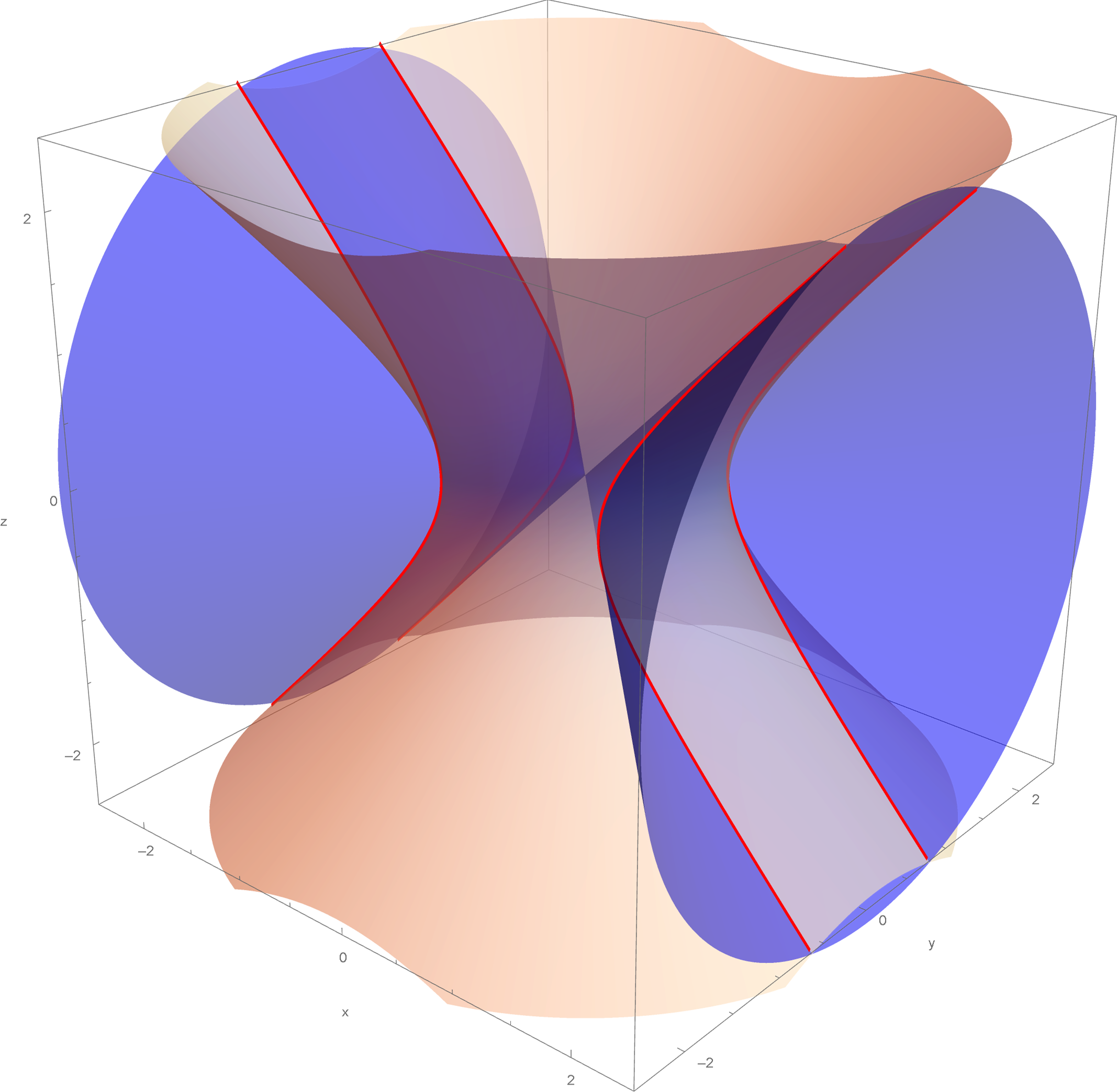 x^2 + y^2 - z^2 = 1, \qquad -x^2 + y^2 + z^2 = 1.