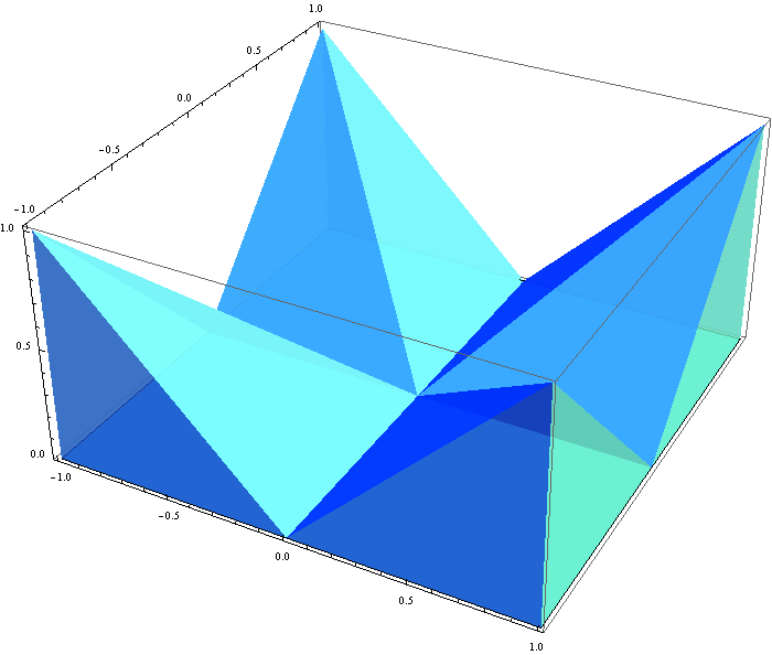 P = \bigl\{ (x,y,z) \in {\mathbb R}^3 \, | \, 0\leq x \leq 1, 0 \leq y \leq x, 0 \leq z \leq x\bigr\}.