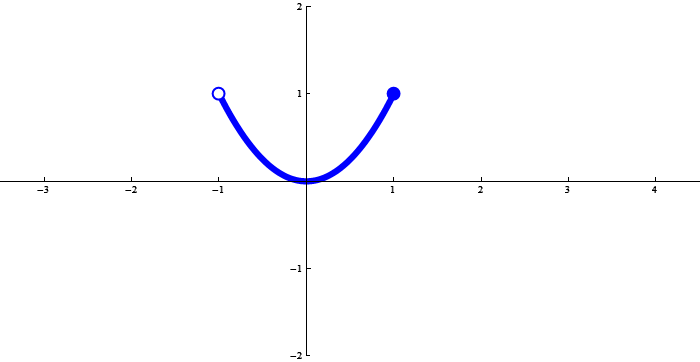 The function below is $x \mapsto x^2$ restricted to $(-1,1]$.