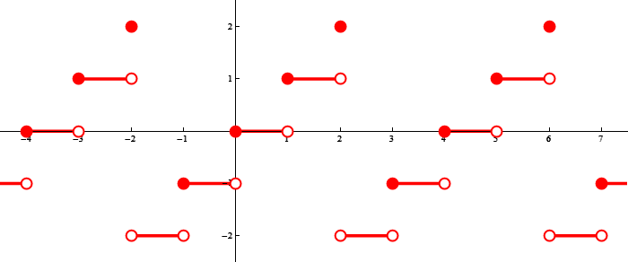 The function below is $x \mapsto \lfloor x \rfloor$ restricted to $(-2,2]$.