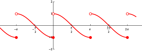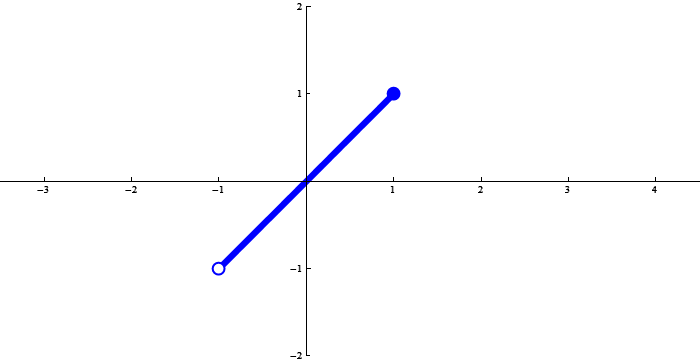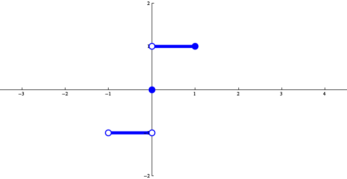 The function below is $x \mapsto {\rm sgn}\, x$ (check Wikipedia for the definition) restricted to $(-1,1]$: