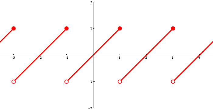 In the next two items, we introduce two slightly different types of periodic extensions of a function defined on a finite interval. Notice that in the first definition the function \(f:[a,b) \to \mathbb{R}\) is defined on the interval \([a,b)\), which is closed at the left endpoint and open at the right endpoint, while in the second definition the function \(f:(a,b] \to \mathbb{R}\) is defined on the interval \((a,b]\), which is open at the left endpoint and closed at the right endpoint. This difference results in different definitions of the periodic extension.