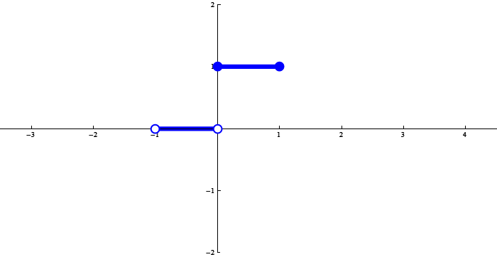 The function below is $x \mapsto {\rm us}\, x$ restricted to $(-1,1]$. Here I use a patriotic (which is unusual) abbreviation for the function which is usually called the unit step function or Heaviside step function. You will notice that Wikipedia's definition assigns the value $1/2$ at $0$. Here we use the definition of the unit step function from Mathematica.