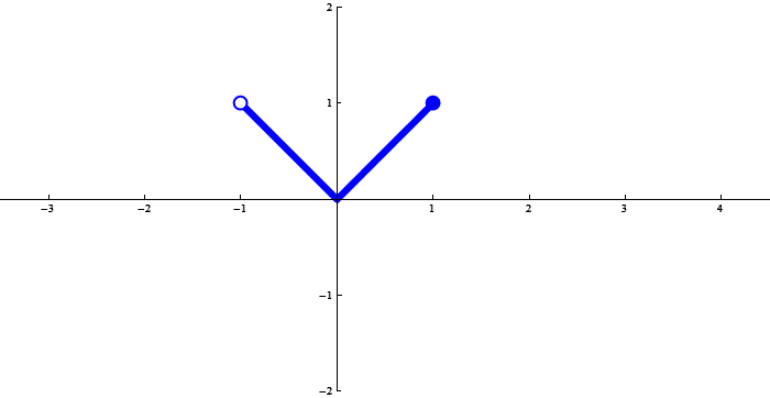 The function below is $x \mapsto |x|$ restricted to $(-1,1]$.