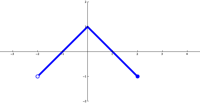 The function below is $x \mapsto 1-|x|$ restricted to $(-2,2]$.
